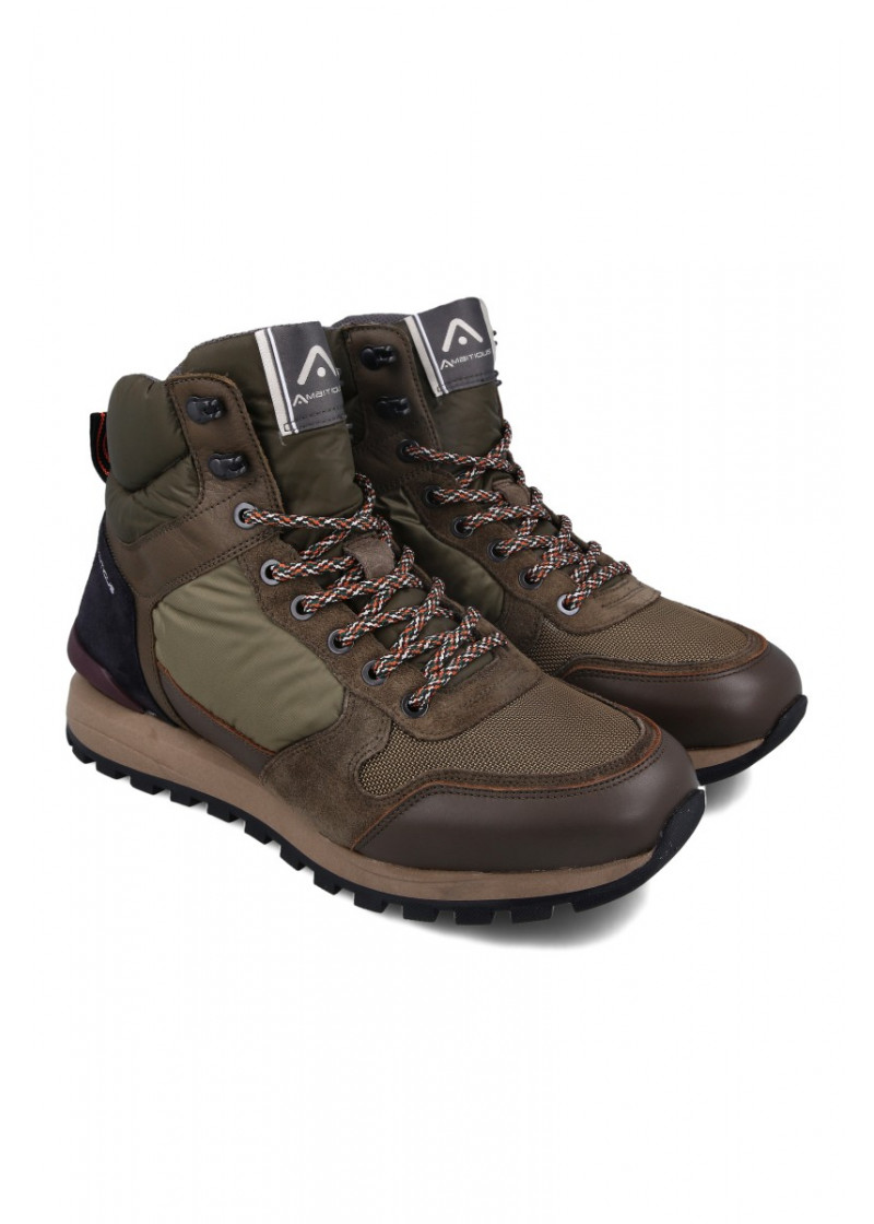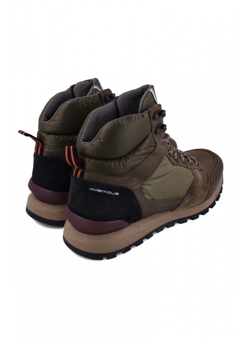 Opis: Duboke muške patike na pertlanje u kombinaciji kože i tekstila različitih tonova braon i maslina zelene boje