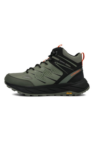 Opis: Muške vodootporne patike maslina zelenoj boji sa crnim detaljima, logo printom i neobičnim đonom.