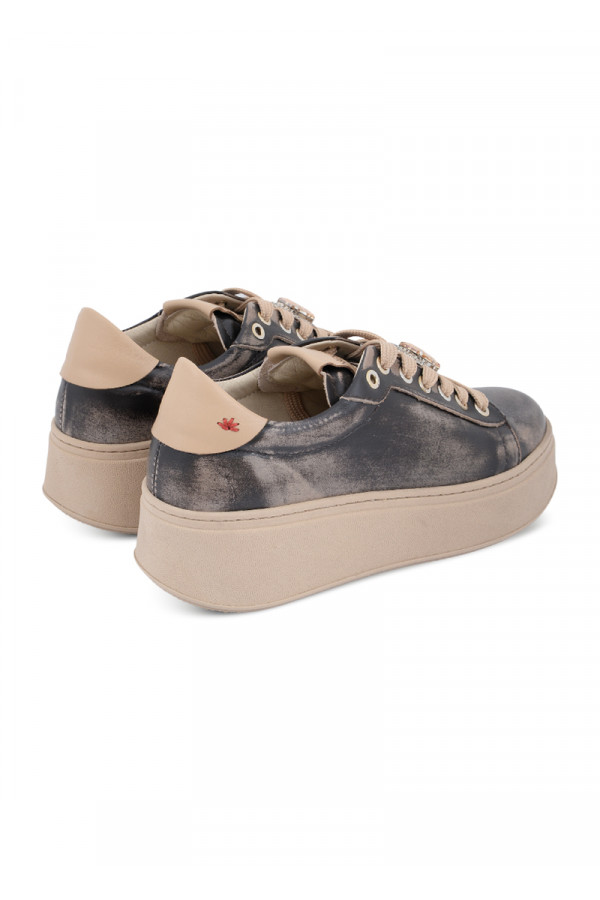 Opis: Kožne ženske patike u metalik braon boji sa izdignutim đonom
