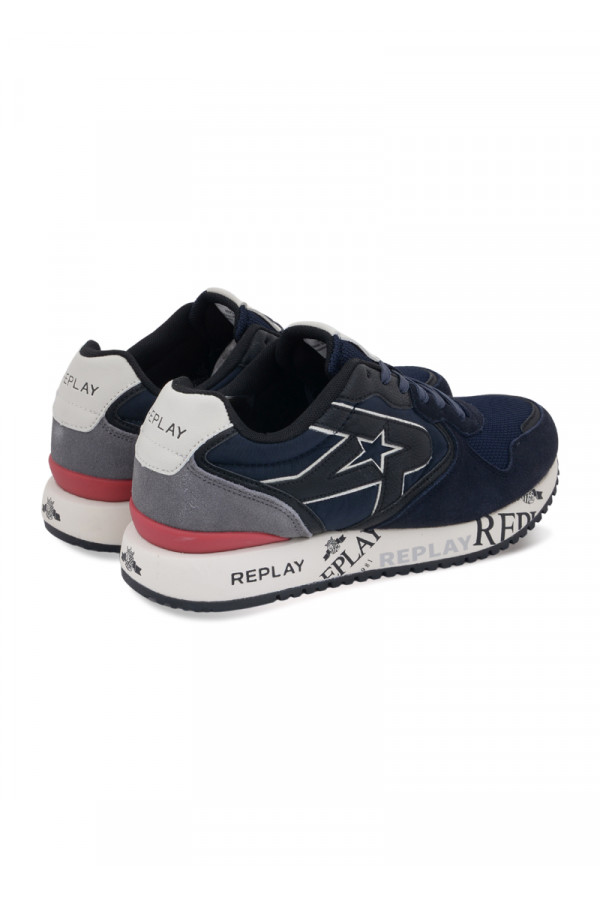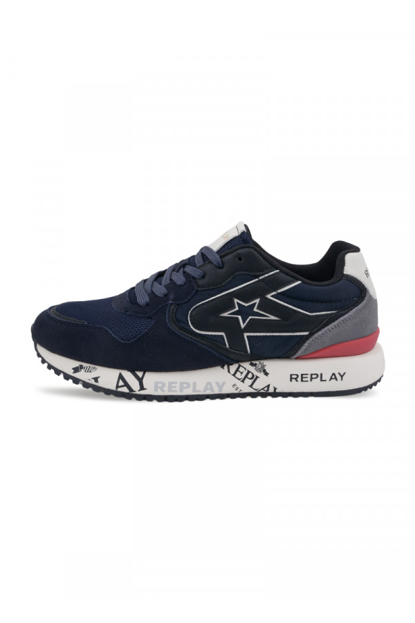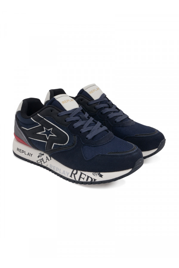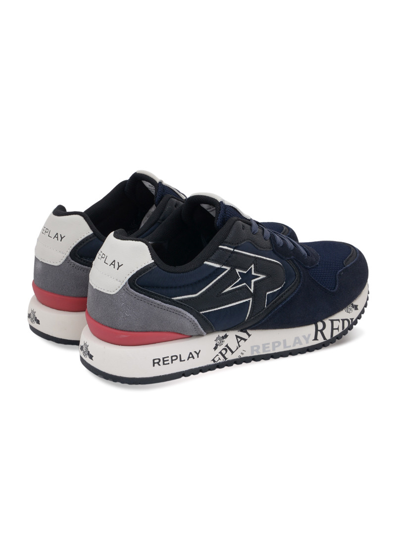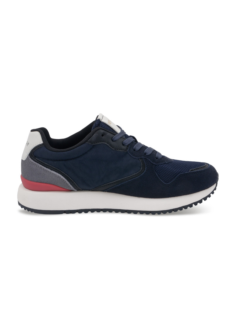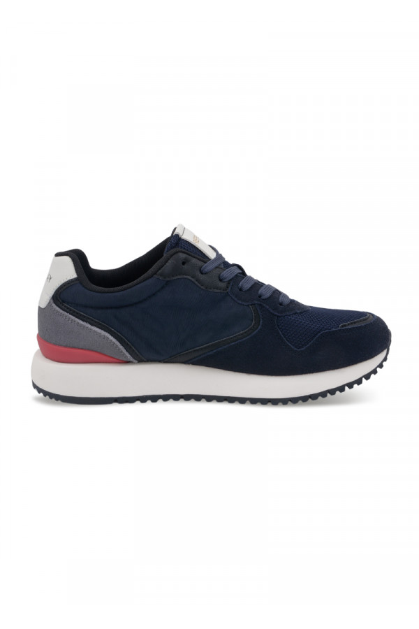 Opis: Plitke muške patike u teget boji sa brendiranim đonom