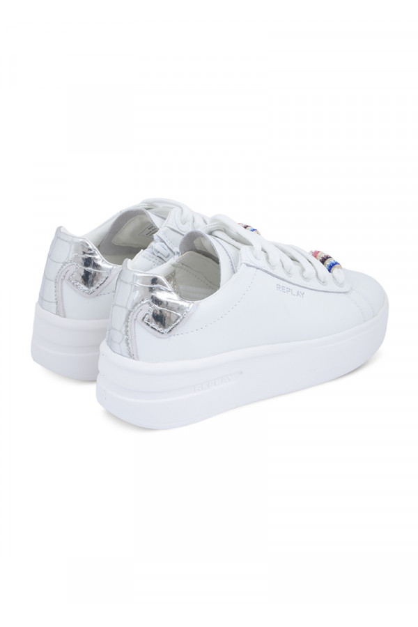 Opis: Kožne ženske plitke patike u beloj boji sa naglašenim đonom i srebrnim detaljima