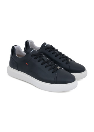 Opis: Kožne plitke muške patiek u crnoj boji sa naglašenim đonom i logo printom