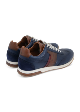 Opis: Kožne plitke muške patike u teget boji sa logo znakom