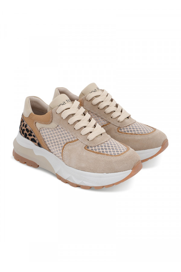 Opis: Kožne ženske plitke patike u bež boji sa animal print detaljima i naglašenim đonom