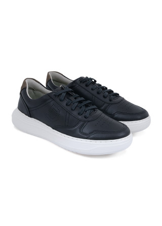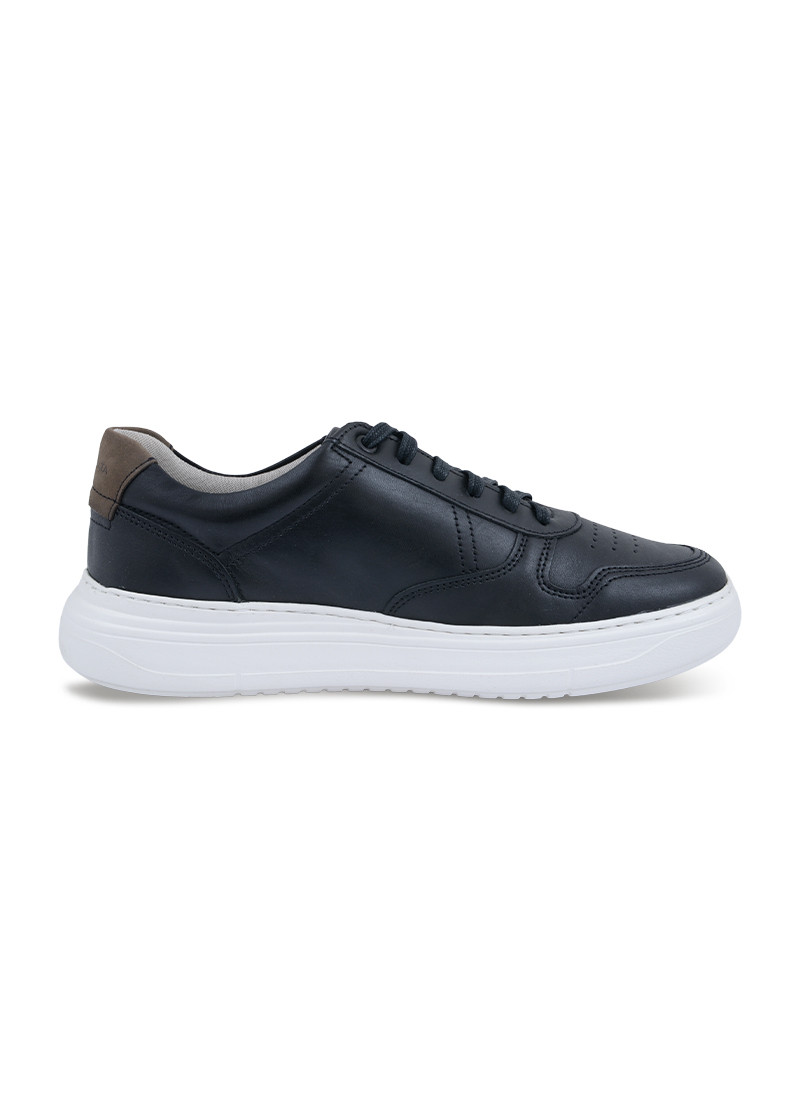Opis: Kožne muške plitke patike u crnoj boji sa izdignutim đonom