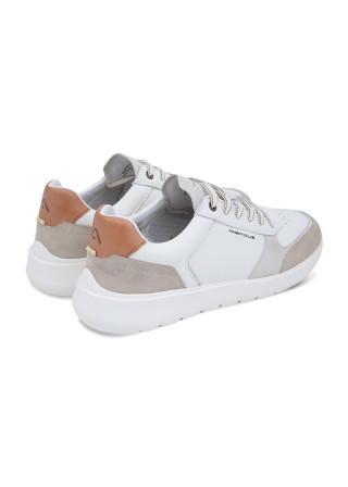 Opis: Kožne muške plitke patike u beloj boji sa blago izdignutim đonom i logo printom
