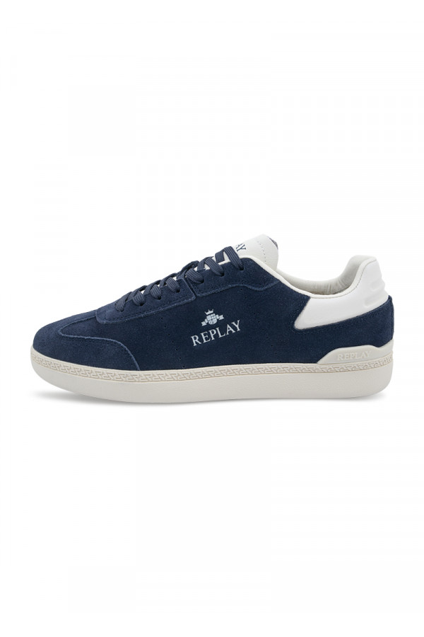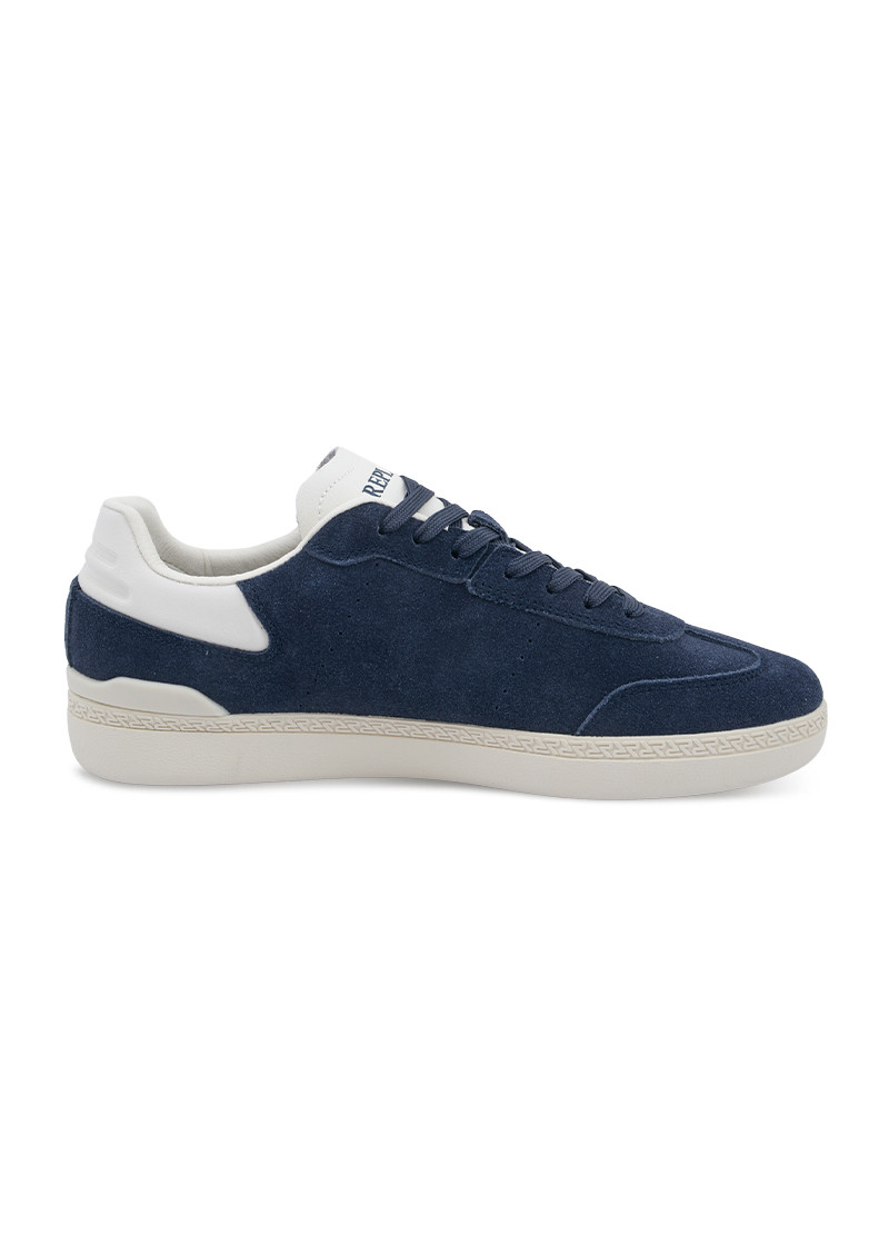 Opis: Kožne plitke muške patike u teget boji sa logo znakom