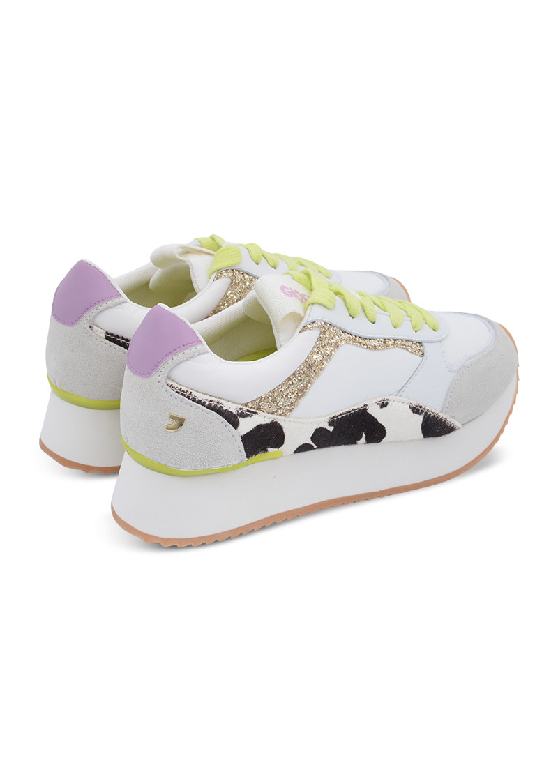 Opis: Plitke ženske patike u beloj boji sa animal print i gliter detaljima