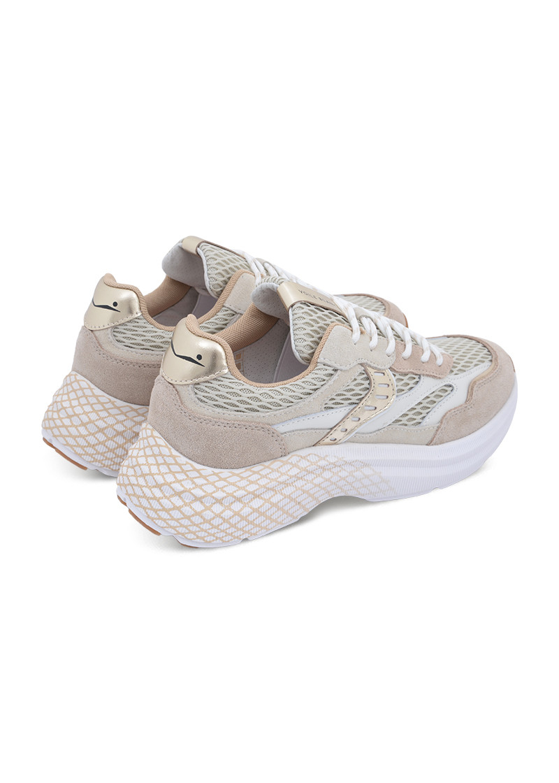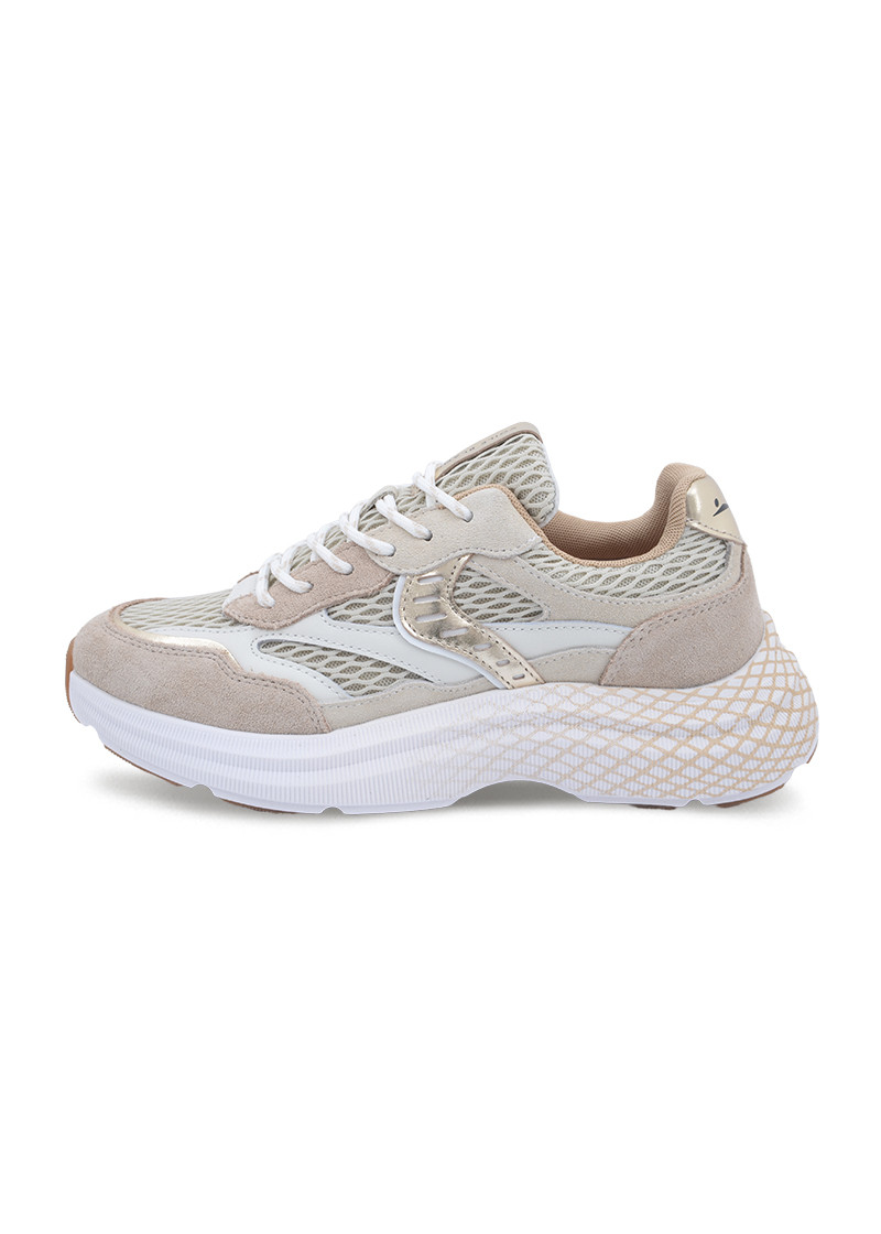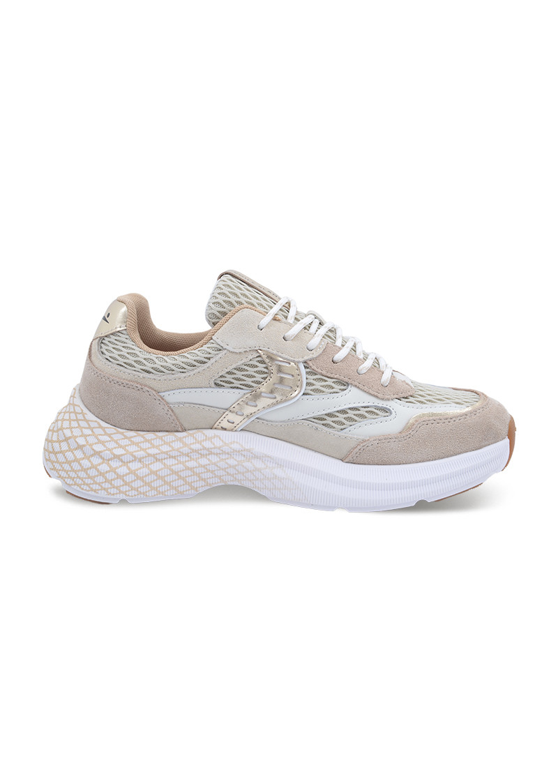 Opis: Ženske plotke patike u kombinaciji bež i bele boje sa mrežicom, platina detaljima i izdignutim đonom