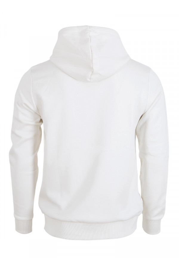 Opis: Muški duks u beloj boji sa kapuljačom i printom