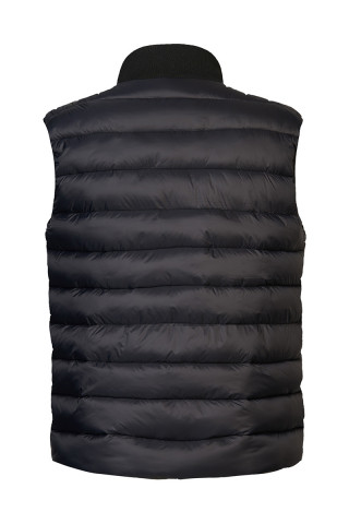 Opis: Muški štepani prsluk u teget boji sa zipom i visokom kragnom
