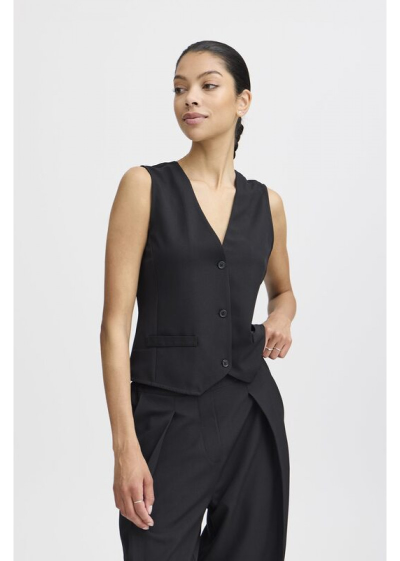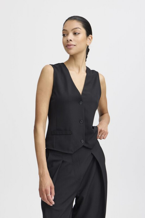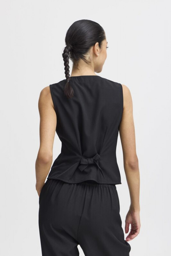 Opis: Ženski prsluk u crnoj boji sa V-e izrezom i kopčanjem na dugmiće