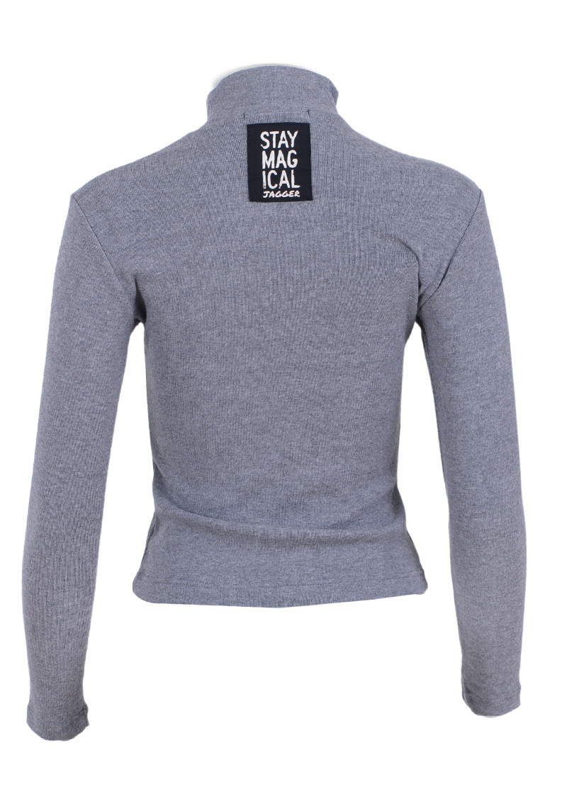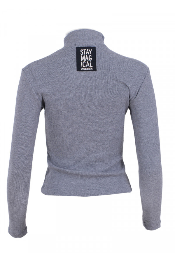 Opis: Ženska rolka u sivoj boji sa dugim rukavima i printom na leđima