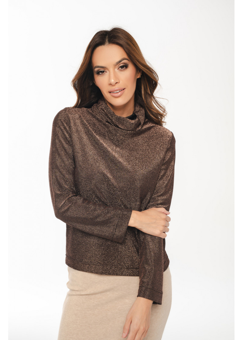 Opis: Ženska rolka u braon boji sa dugim rukavima i metaliziranim vlaknima