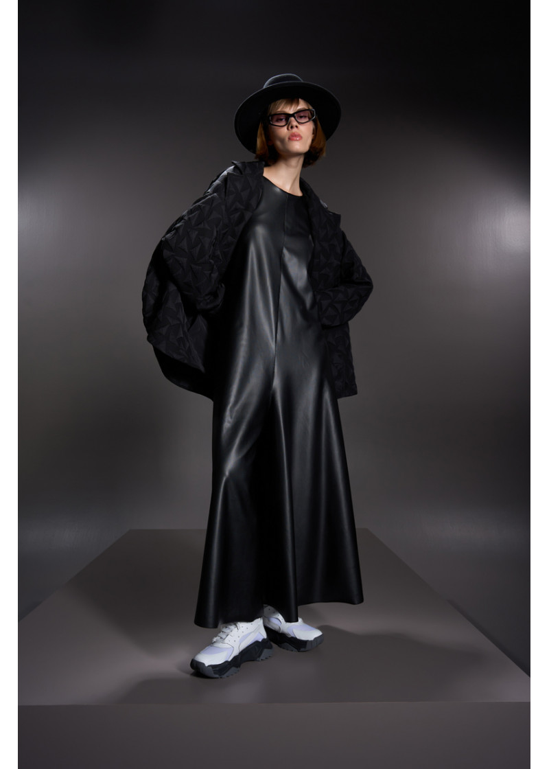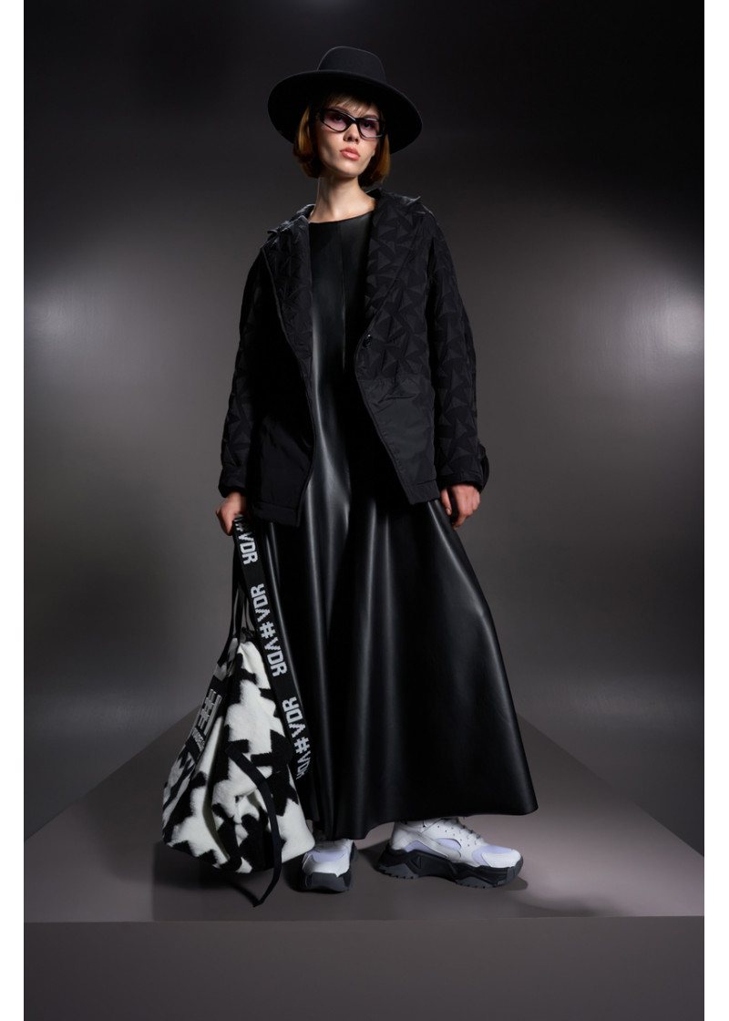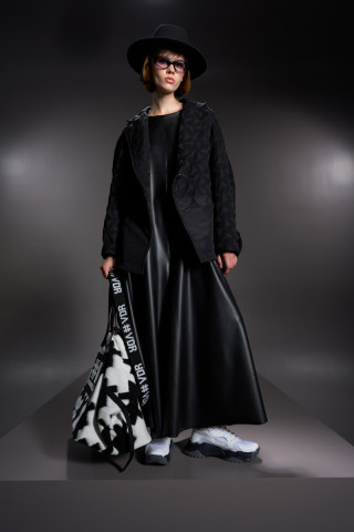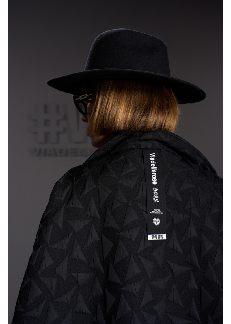 Opis: Ženska jakna-sako u crnoj boji sa reljefnim detaljima, kopčanjem na dugme i reverima