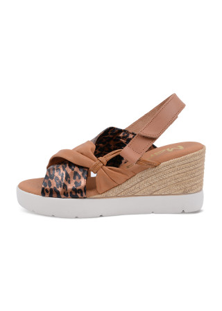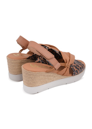 Opis: Kožne ženske sandale u kombinaciji kamel boje i animal printa sa naglašenom paltformom