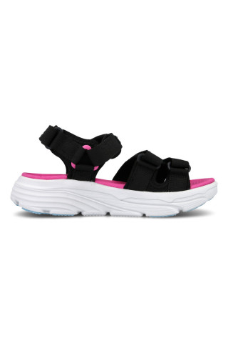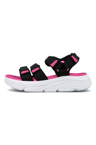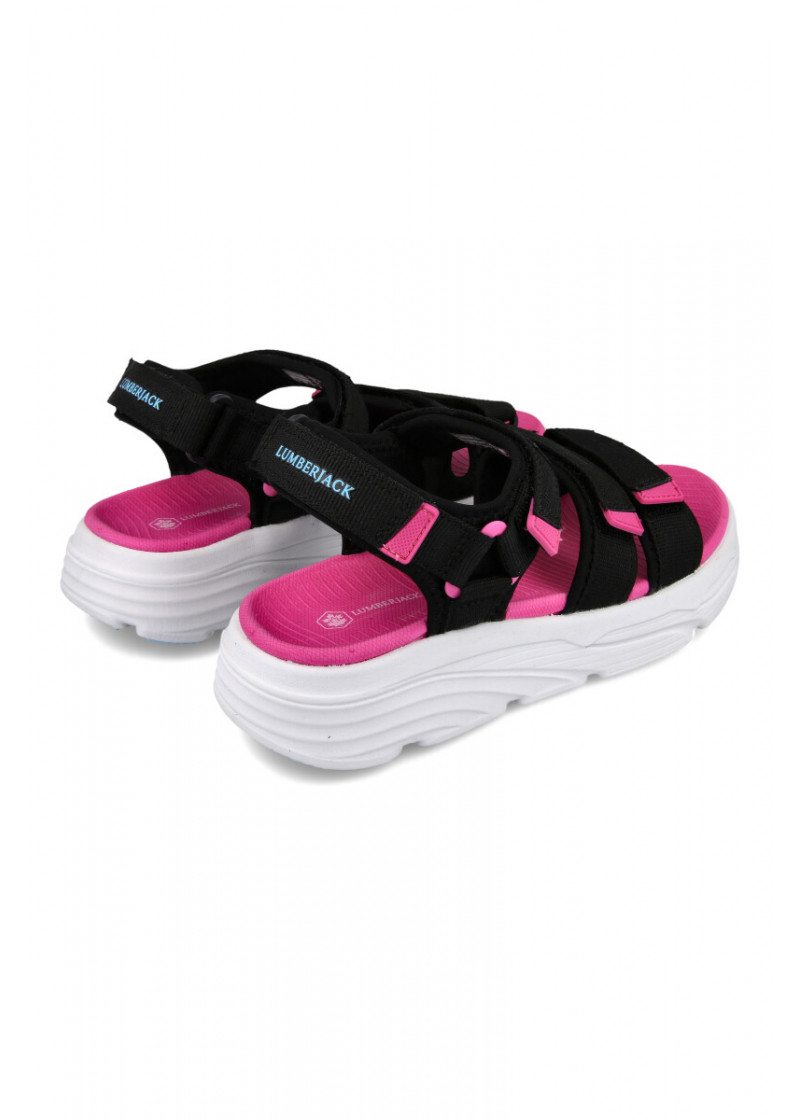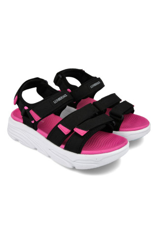 Opis: Ravne ženske sandale u kombinaciji pink i crne boje sa podesivim kaiševima, laganim đonom i logo printom
