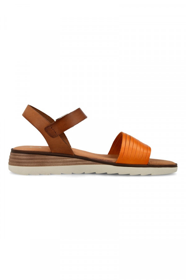 Opis: Kožne ženske ravne sandale sa tankim kaiševima u narandžastoj boji