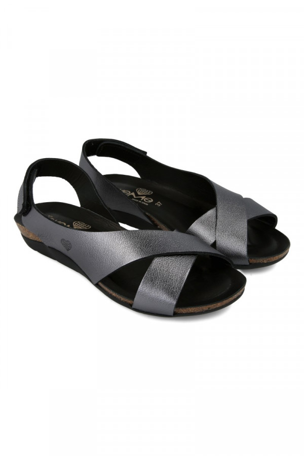 Opis: Kožne ženske ravne sandale sa ukrštenim kaiševima u metalik sivoj boji