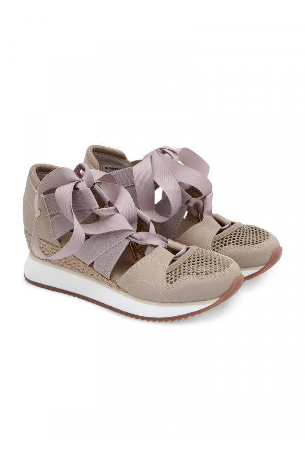 Opis: Ženske sandale u bež boji sa kaiševima na vezivanje i visokim patika-đonom