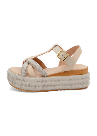 Opis: Ženske sandale u kombinaciji puder i bež boje sa naglašenim platforma đonom