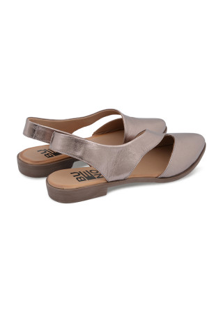 Opis: Kožne ženske ravne sandale u metali šampanj boji sa špicastim vrhom i otvorenom petom