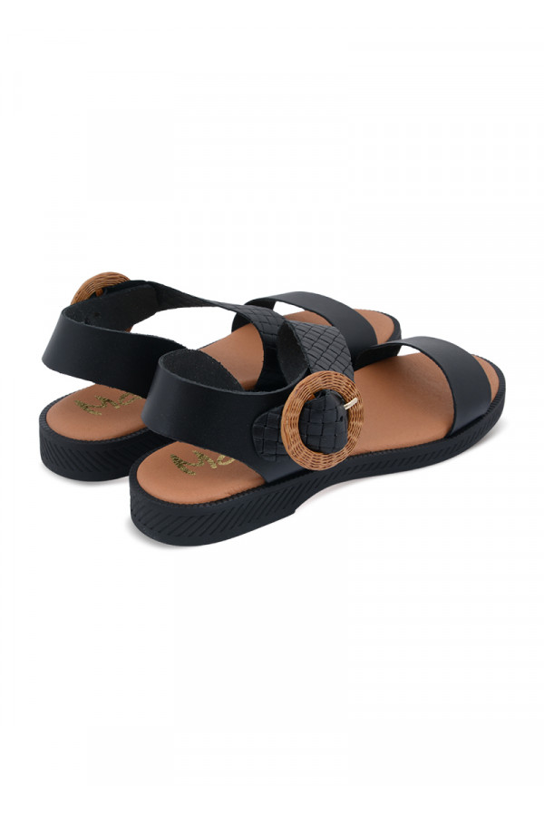 Opis: Kožne ženske ravne sandale u crnoj boji sa dekorativnom šnalom