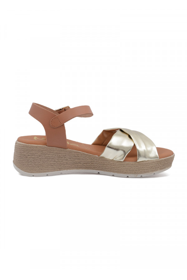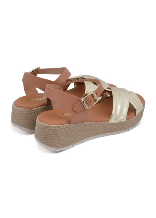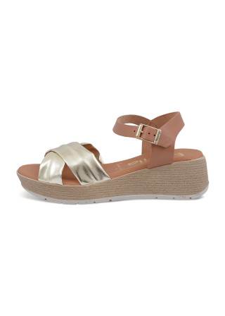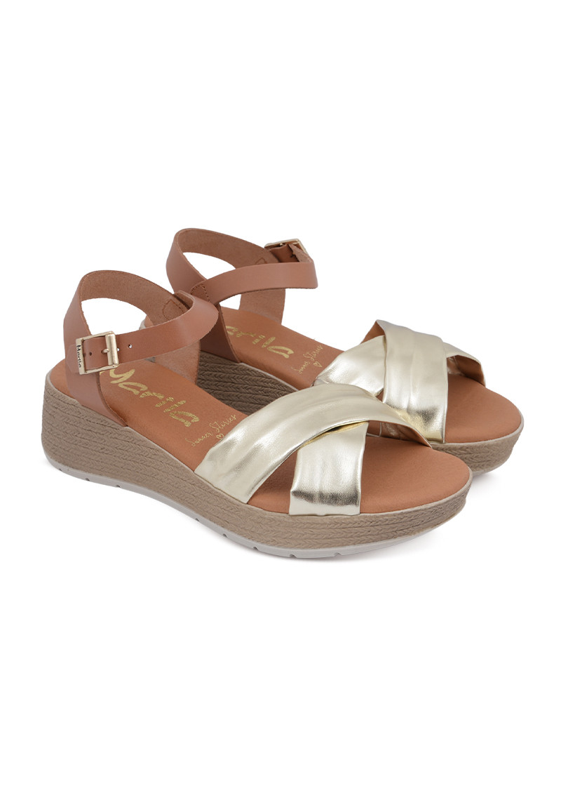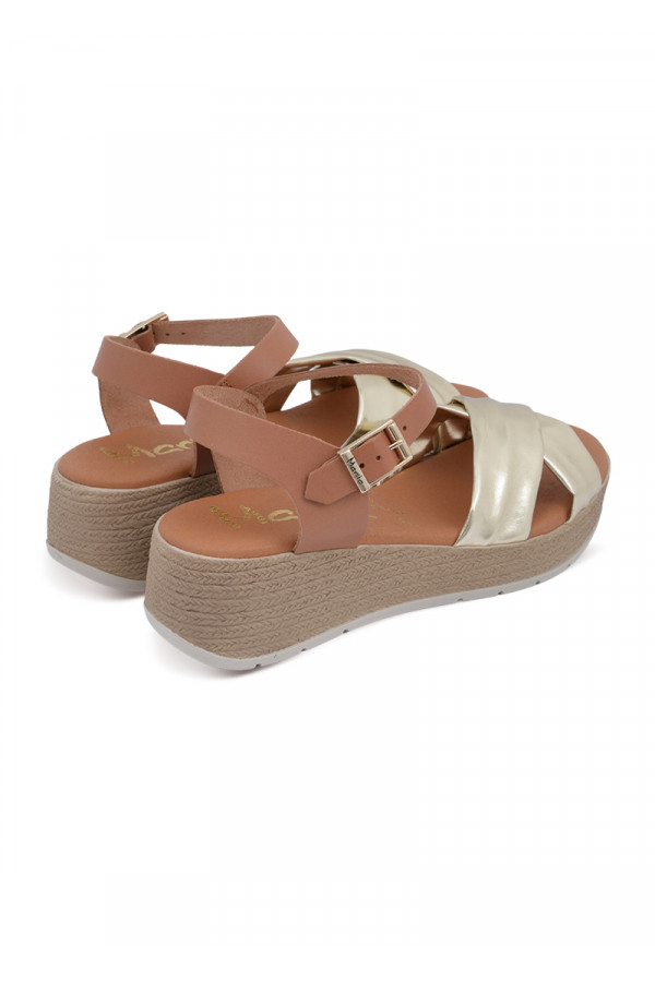 Opis: Kožne ženske sandale sa ukrštenim kaiševima u platina boji i platforma đonom