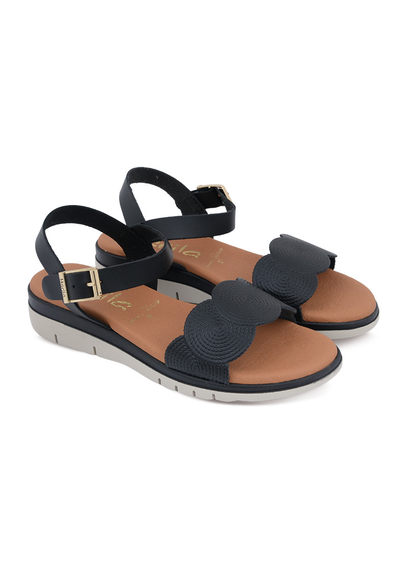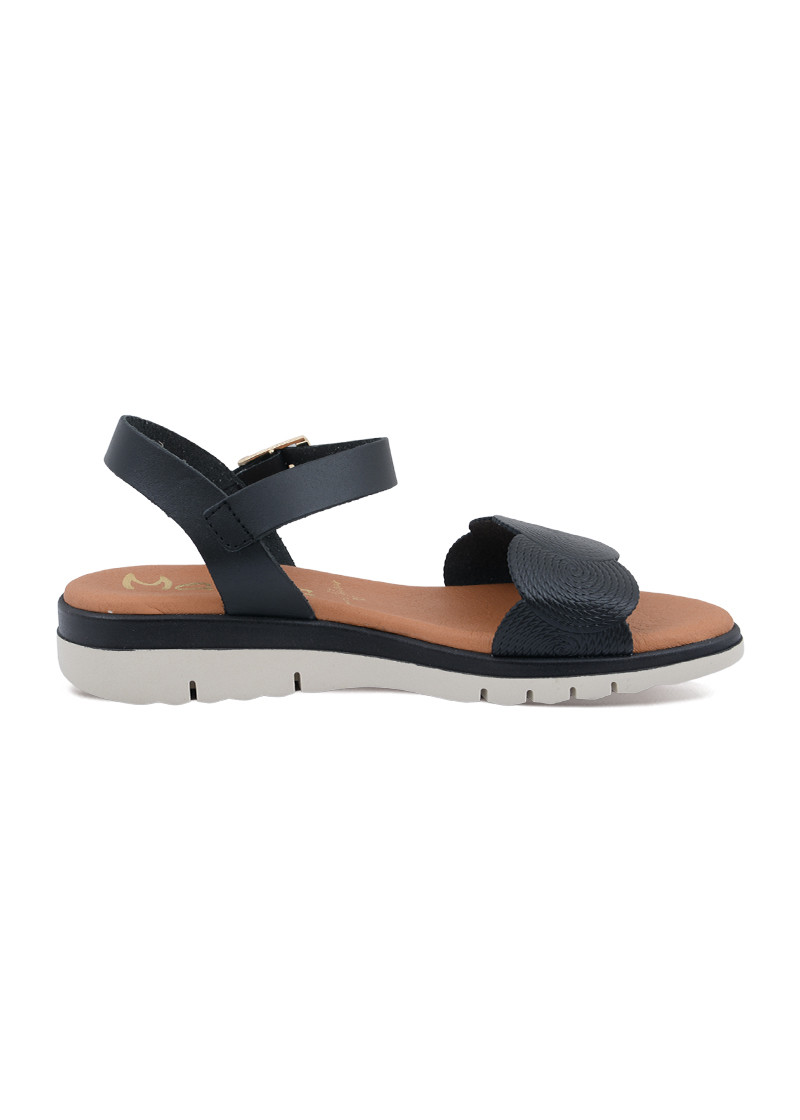 Opis: Kožne ženske sandale u crnoj boji sa blago izdignutim đonom i kaišem oko ćlanka