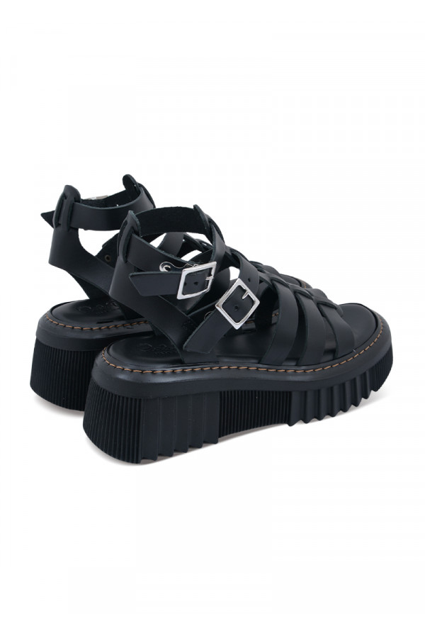 Opis: Kožne ženske sandale u crnoj boji sa kaiševima i naglašenim rebrastim đonom
