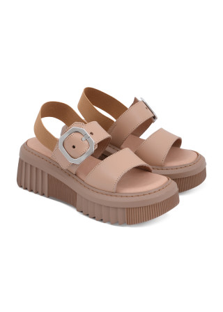 Opis: Kožne ženske sandale u bež boji sa izdignutim rebrastim đonom