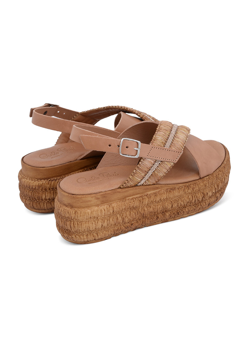 Opis: Kožne ženske sandale u boji kože sa naglašenom platformom i ukrštenim kaiševima