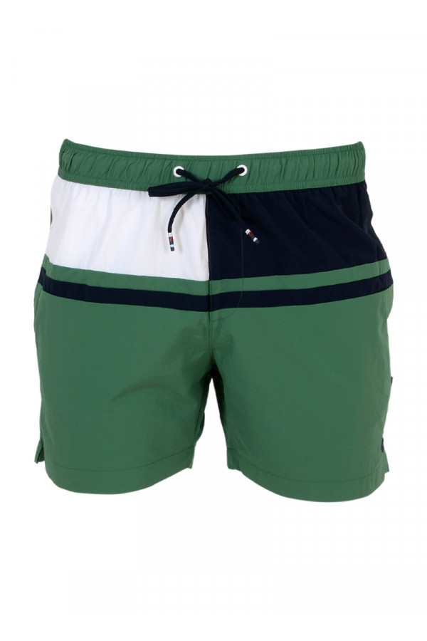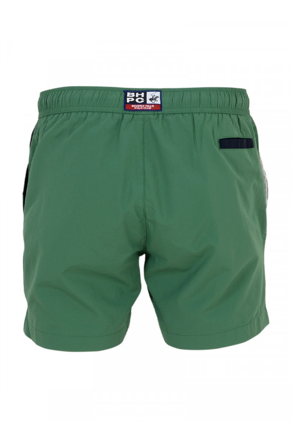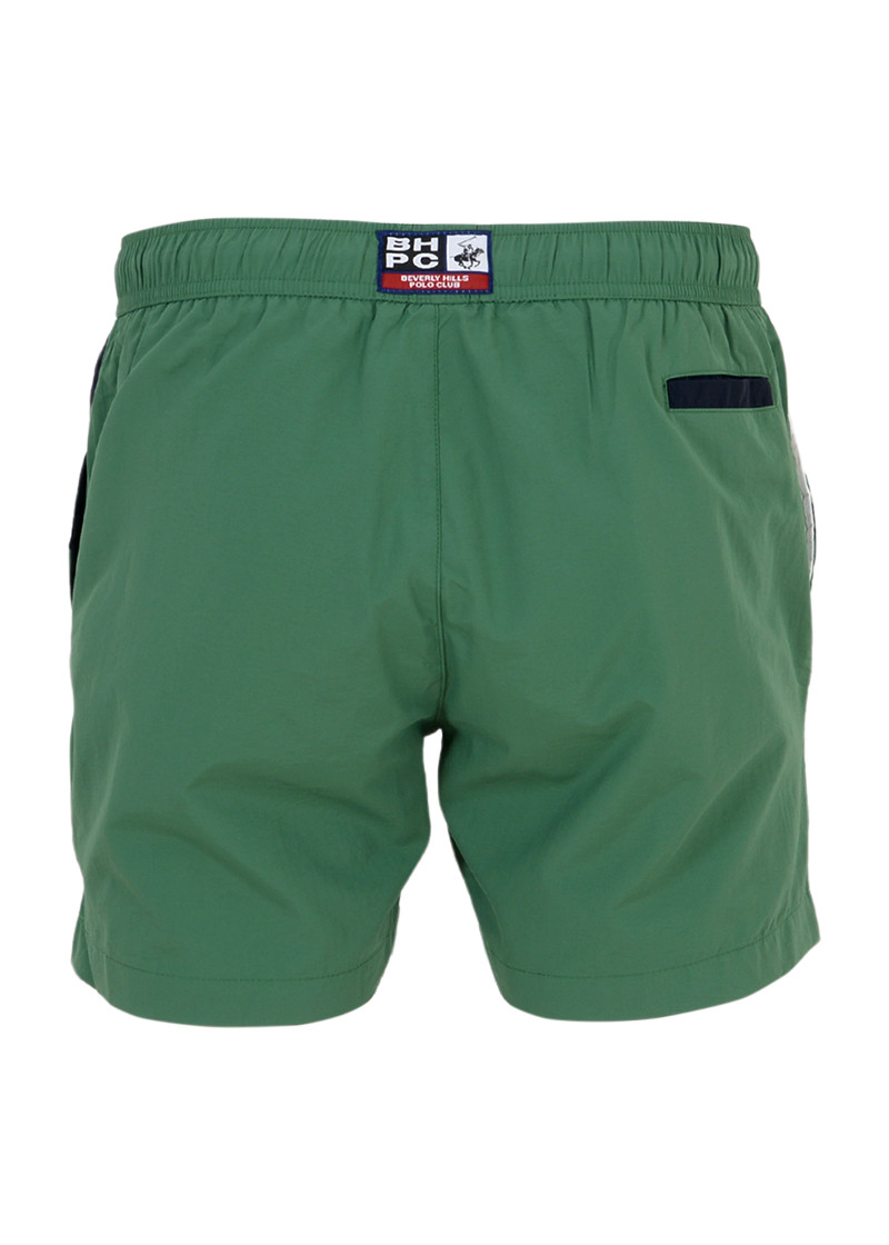 Opis: Muški šports za kupanje u zelenoj boji sa džepom i logo aplikacijom