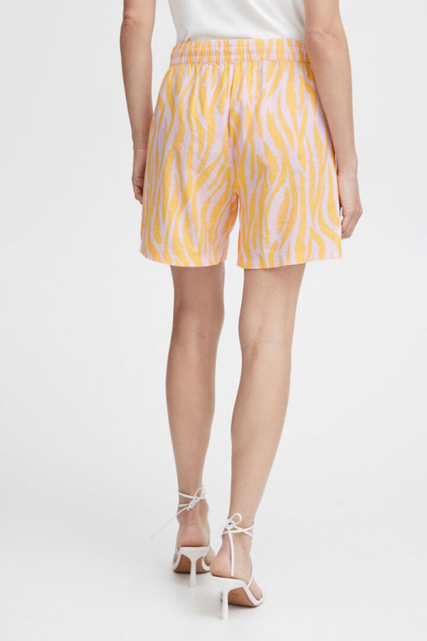 Opis: Ženski šorts u narandžastom zebra dezenu sa širim nogavicama, lastiš pojasomi džepovima
