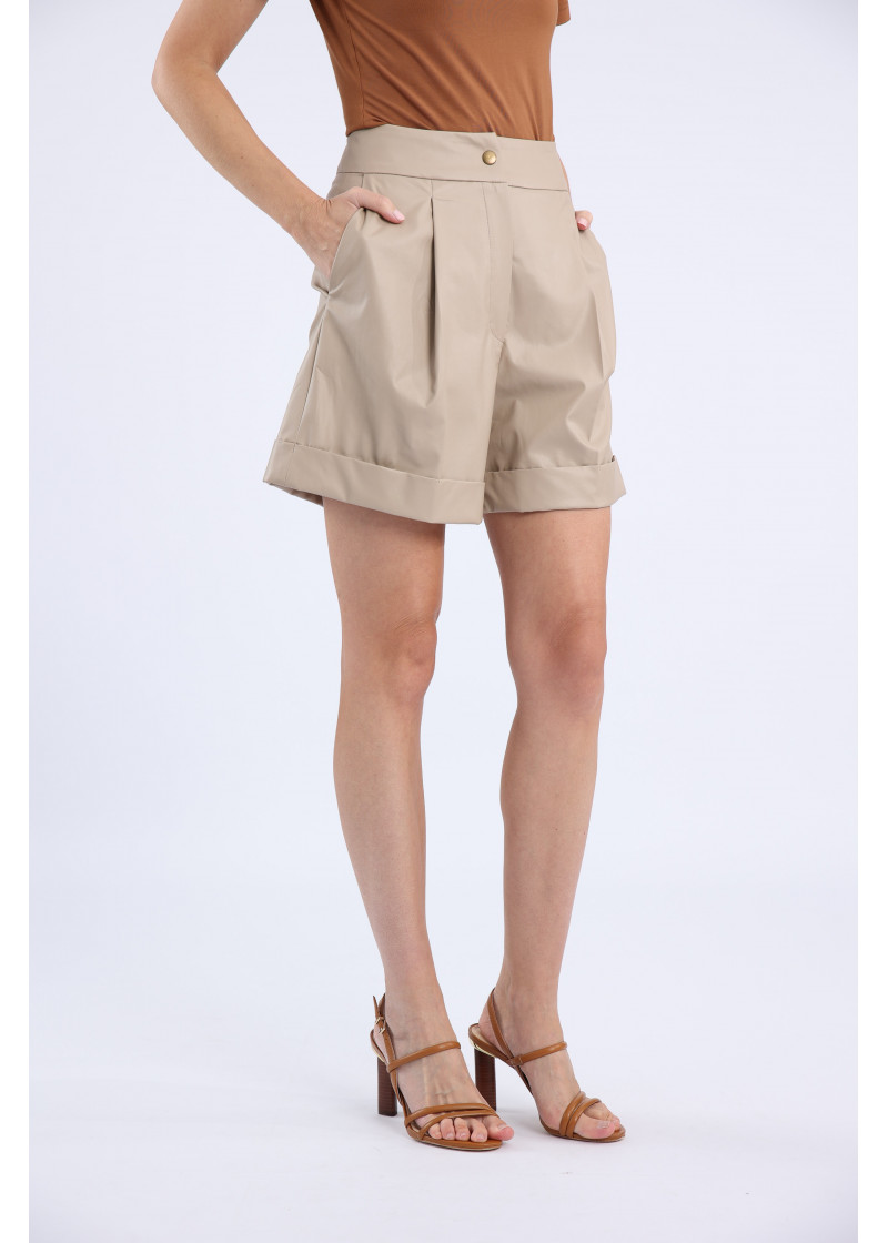 Opis: Ženske bermude u bež boji sa faltama i džepovima