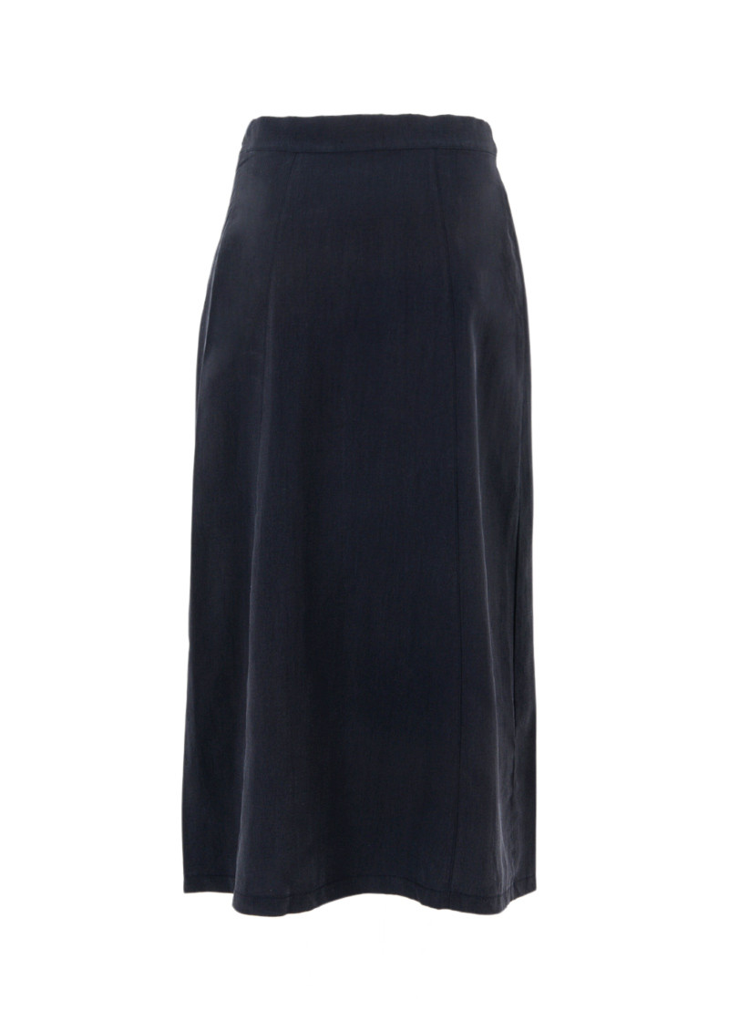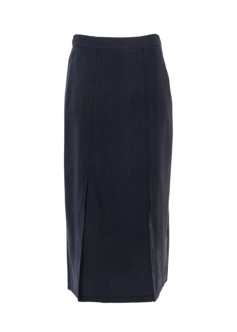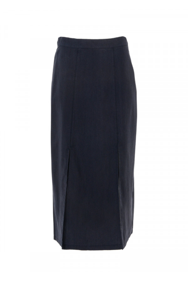 Opis: Duga suknja ravnog kroja u teget boji sa širokim naborom na zadnjoj strani