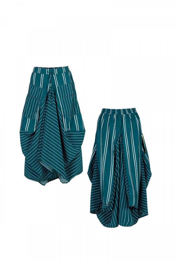Opis: Suknja sa asimetričnim naborima u prugastom dezenu