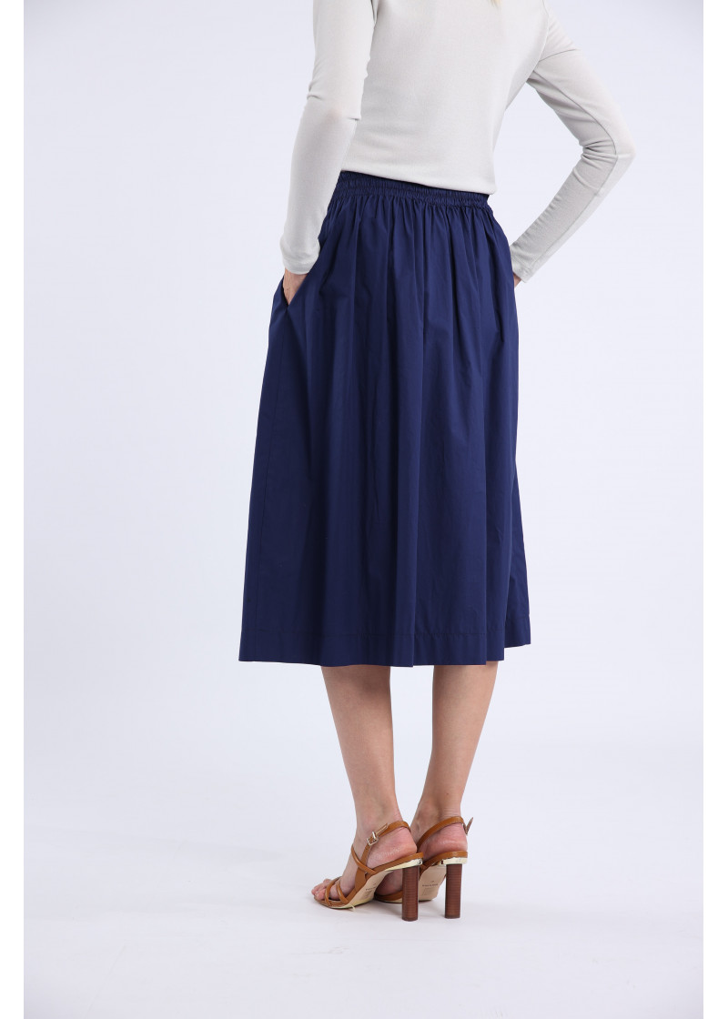 Opis: Nabrana pamučna suknja midi dužine u teget boji sa prednjim džepovima