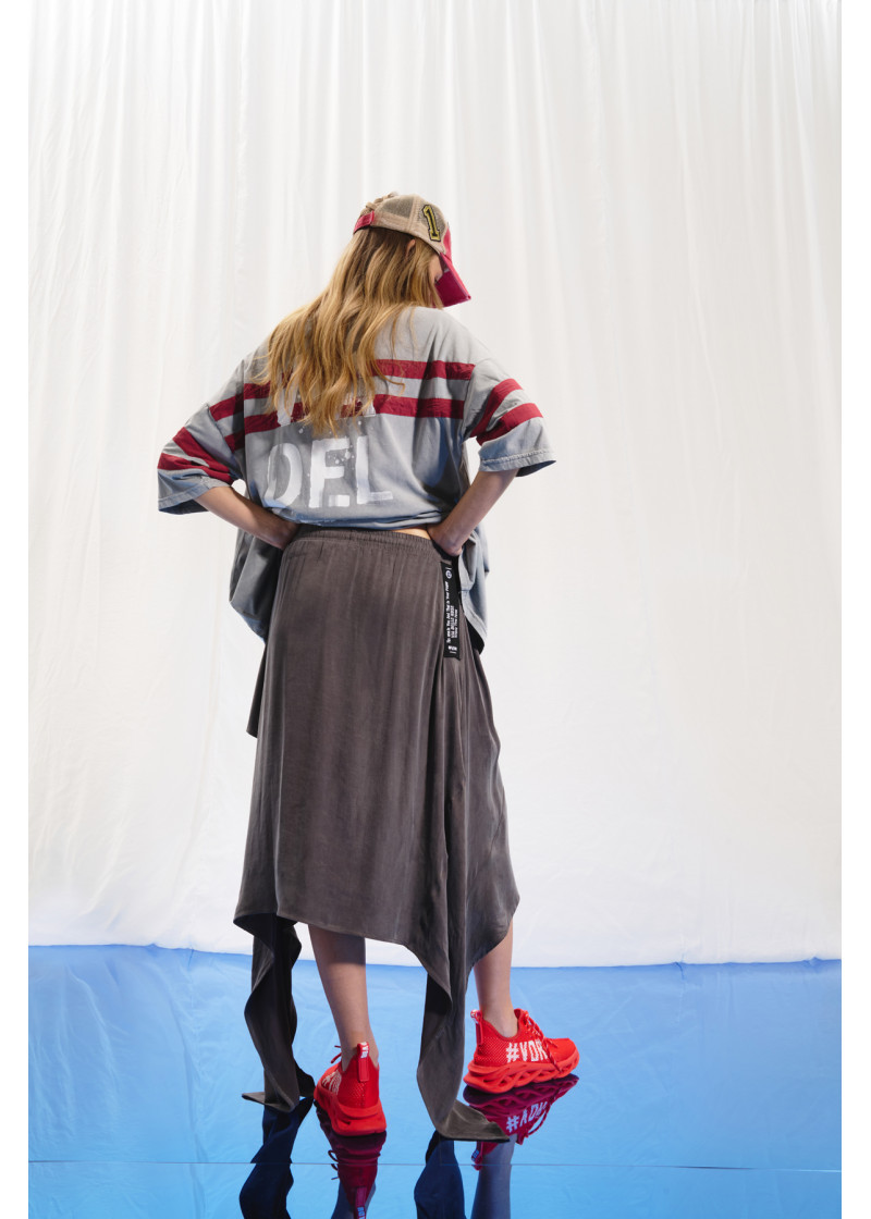 Opis: Oversized suknja u antracit boji asimetrične dužine