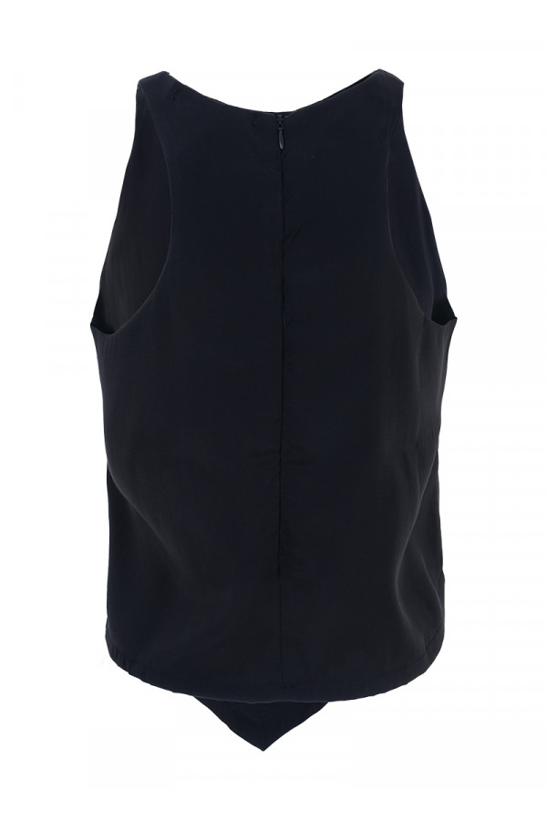 Opis: Ženska bluza asimetrične dužine od viskoze u crnoj boji bez rukava