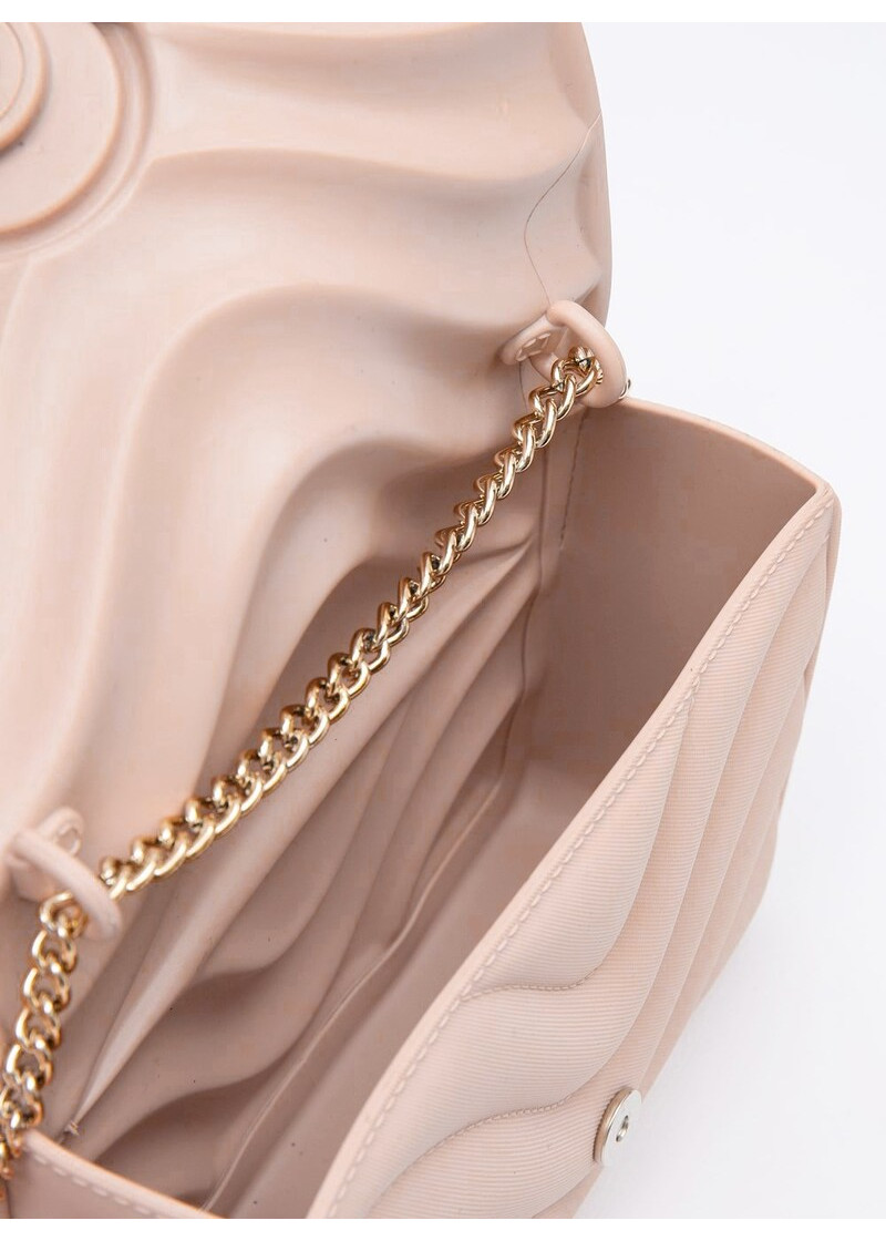 Opis: Gumena ženska torba u bež boji sa logo znakom