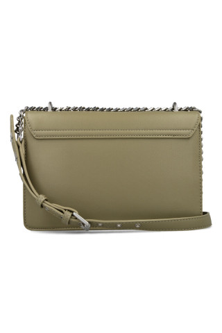 Opis: Ženska torbica na preklop u maslina zelenoj boji sa lancem i logo aplikacijom